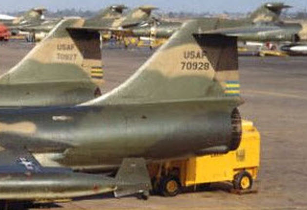 The 435th TFS’s first eight F-104Cs arrived at Udorn Airbase in Thailand on 6 June 1966 and were duly attached to the 8th TFW “Wolfpack”. Udorn was the most northerly Thai base, placing it closer to northern Laos and North Vietnam and reducing the tanking requirements for the F-104Cs. After initial successes in the escort role, the first eight were joined by 12 more from the 435th TFS on July 22nd.