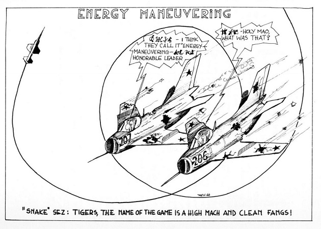 The “Wolfpack” devised tactics which made the best use of the F-104C’s high speed and the F-4C Phantom’s longer ranging search radar under the Rules of Engagement that the required pilots to acquire visual identification of potentially hostile aircraft, rather than being allowed to use their long range radar-guided AIM-7 Sparrow missiles to destroy them beyond visual range. If bogies were picked up by the Phantom’s radars, often at more than 40 miles (64.37 km), the Starfighters would accelerate forward to make a visual identification and then turn away. The Phantom pilots would then attempt a long-range missile launch and then the Starfighters could then return for a Sidewinder or gun attack from the rear quarter. However, the MiGs never put themselves in the position to be attacked this way.
