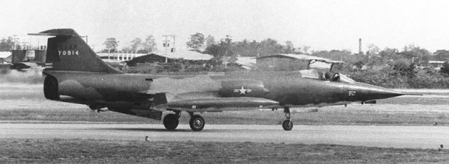 F-104C-5-LO, serial number 56-0886, of the 479th TFW was one of the first Starfighters at Da Nang in April 1965. The sand bag wall between the planes provided some protection from VC rocket attacks.
