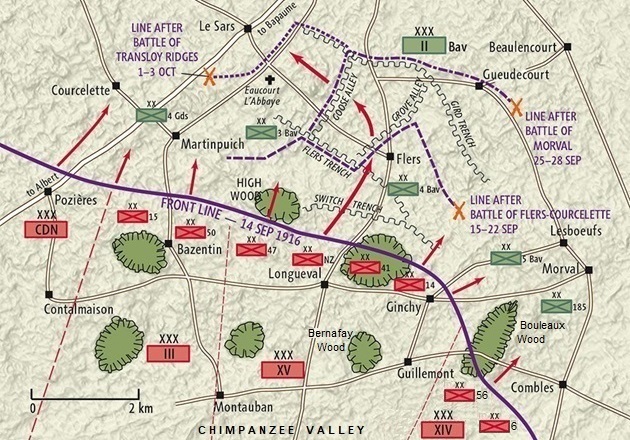 Chimpanzee Valley was the Allied code name for an assembly area behind the front line. The exact location and size of the area is unknown but it is stated to be somewhere near Montauban (today Montauban-de-Picardie) and south of Bernafay Wood.