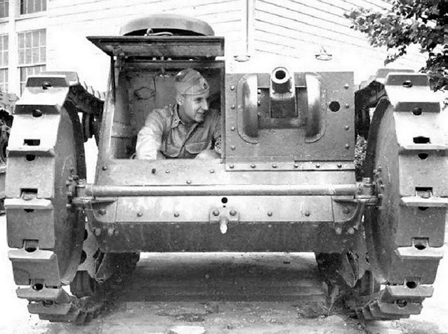 Lieutenant Colonel Patton posed beside a Renault FT tank on 15 July 1918.