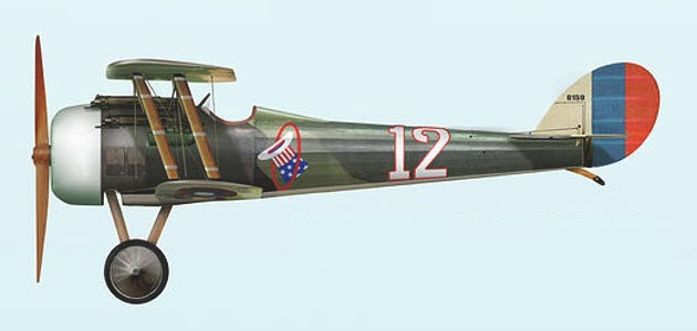 Nieuport 28 C-1, s/n 6159, Plane Number 12 was assigned to First Lieutenant Rickenbacker. The US squadrons carried French Roundels on their planes in France 1917-18.