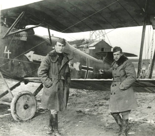 Rickenbacker (on the left) standing next to another Hannover CL.IIIA from Schlasta 20 that was shot down but not by him. Note number 4 on the forward fuselage. The officer on the right most likely a squadron mate, his name is not known.