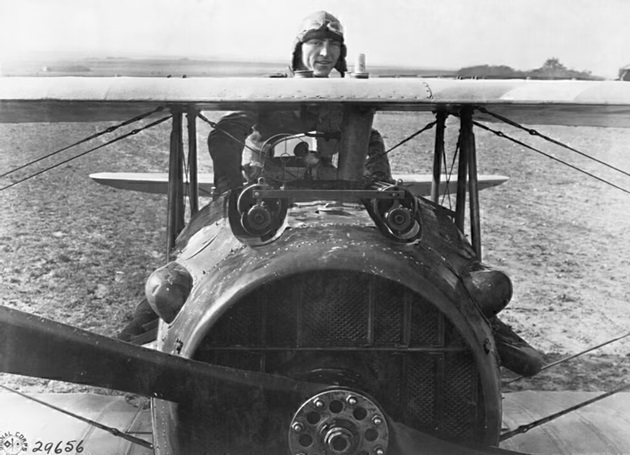Film: Captains J. A. Meissner and Eddie Rickenbacker seated in their airborne aircraft.