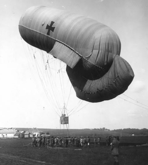 The Parseval-Sigsfeld Drachenballon was a German observation balloon designed to replace the older spherical type balloons used for nearly a century. The spherical type balloons twirled when it was windy. The Drachenballon (“Dragon balloon”) was designed in such a way that it would stay stationary in strong wind, and was more stable over its predecessors, using design attributes similar to kites.