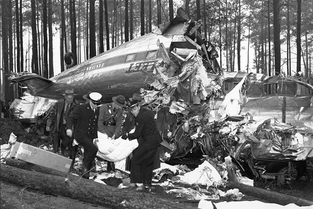 On 26 February 1941 at 11:50 PM (CST), Eastern Air Lines Flight 21, registration NC28394, was a Douglas Sleeper Transport (DST) that crashed while preparing to land at Candler Field (today Hartsfield-Jackson Atlanta International Airport) in Atlanta, Georgia. Half of the 16 on board were killed, including Maryland Congressman William Devereux Byron II. Rickenbacker was among the injured and he was barely alive. Soaked in fuel, he was trapped in the wreckage overnight. The press mistakenly announced his death.