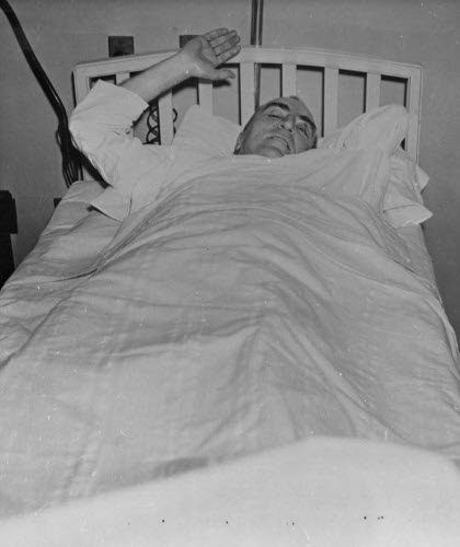 Rickenbacker recovering from his supposedly “fatal” injuries in a hospital bed in Atlanta, Georgia after 27 February 1941.