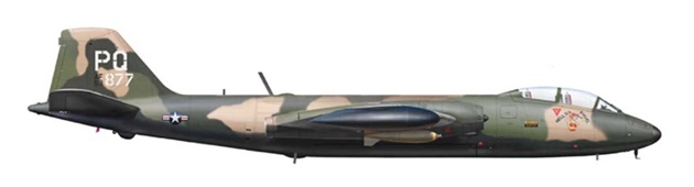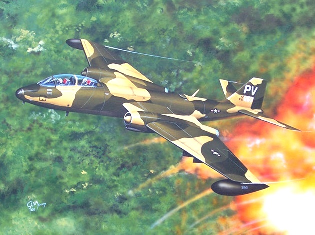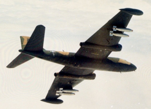 The B-57Bs were primarily used for dive bombing and strafing. With their bomb loads and four hours of flight time made them excellent ground support aircraft, as well as exceptional truck killers along the Ho Chi Minh trail.