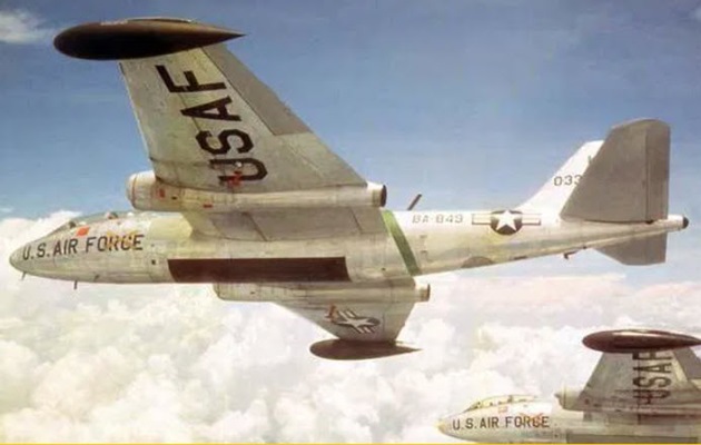Unarmed 8th Bomb Squadron B-57Bs leaving Clark Air base on the way to South Vietnam in August 1964.