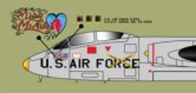 The 1/48 Zotz Decals sheet (see below) has an option for B-57B 53-3908 of the 8th BS/6252nd TFW at Da Nang in January 1966 with name “Miss Mi-Nuki”, nose art, and mission markings. The nose art appear to be a woman’s head with red hair in a heart.
