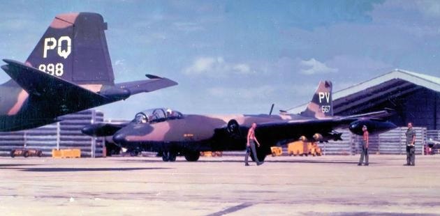 RB-57E 55–4257 of Detachment 1, 460th Tactical Reconnaissance Wing (TRW) at Tan Son Nhut Air Base in May 1971.