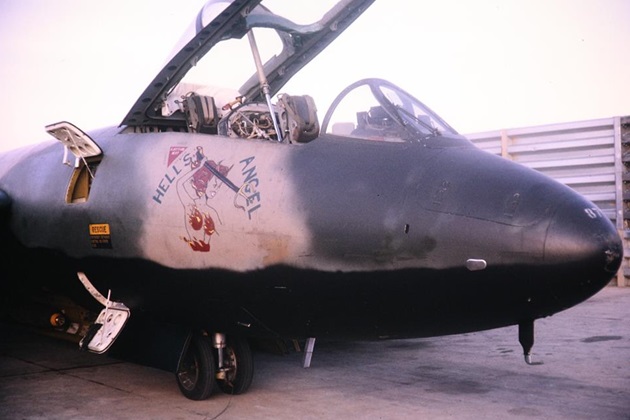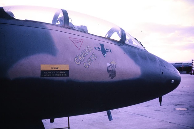 On 1 November 1970, Wing Commander Downing officially took over command of No.2 Squadron at Phan Rang Air Base. To the right of Downing’s head on the fuselage is the navigator’s small window. The panel behind the cockpit canopy on top of the fuselage blows off when the navigator ejects.