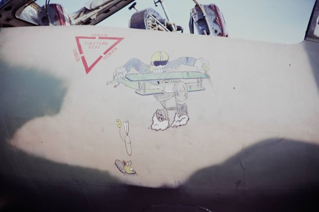 Prior to being sent to South Vietnam, B-57B 53-3908 was with the 8th BS on nuclear alert at Kunsan Air Base in South Korea starting in August 1958 and one source state it was named “Miss Mi-Nuki” and the nose art was added while in Korea. The photo of B-57B 53-3908 above does not have these markings, so either they had been removed sometime before the above photo was taken or added after the above photo was taken. Not able to find any other period photo of B-57B 53-3908 with those markings on the nose.