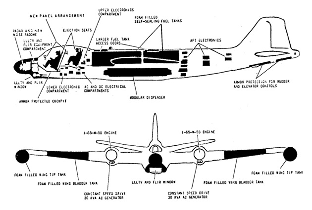 In April 1965, the Canberras began flying night intruder missions supported by USAF’s Fairchild C-123 Provider or Lockheed C-130 Hercules flare ships and USN’s EF-10B Skyknight electronic warfare aircraft.