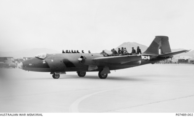 The RAAF No.2 Squadron, call sign “Magpie”, was equipped with Canberra B.20s. A magpie is an Australian bird of the Australasian butcher bird family with black-and-white plumage.