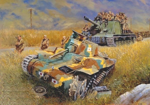 The 11th Tank Regiment worked in cooperation with Type 2 Ka-Mi amphibious tanks of the the Japanese naval guard force. Around 0650 hours, the 11th Tank Regiment’s commanding officer led a banzai charge against the Soviet forces on Hill 171 and drove them back, then advanced further up the northern slope of the hill. The Soviet forces fiercely resisted by concentrating their anti-tank weapons (4 anti-tank guns, anti-tank rifles, and RPG-43 HEAT hand grenades), destroying the Japanese tanks one by one. However, after being hit by fire from Japanese forces southeast of Hill 171 and with reinforcements from the Japanese 293rd Infantry Battalion joining the fight, the Soviet forces retreated to the north side of Hill 171, leaving behind numerous bodies.