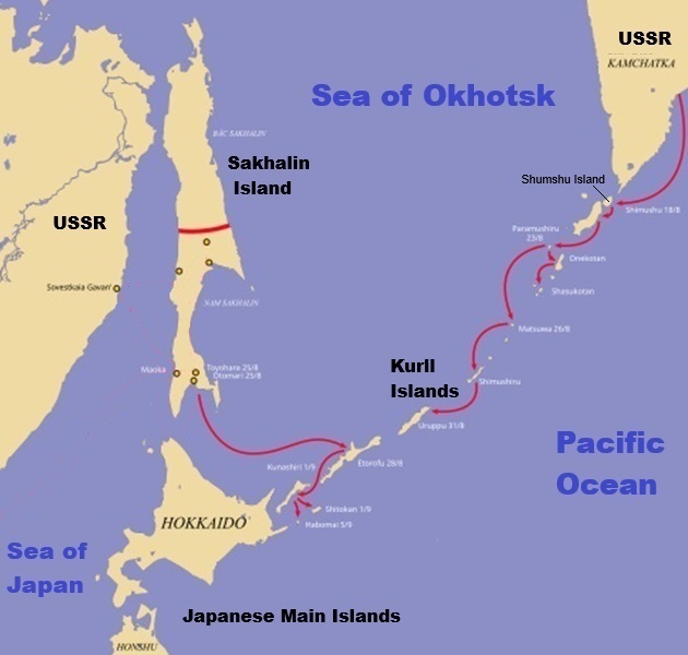 On September 4th, the Soviet 87th Rifle Corps occupied five smaller islands (Sibotzu, Taraku-Shima, Uri-Shima, Akiuri, and Suiseto). After September 4th, Soviet forces occupied the rest of the Kuril Islands without further resistance.