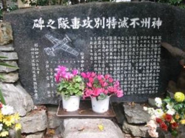 The Shinshū Fumetsu Special Attack Squadron Monument, erected in 1967, stands on the grounds of the Setagaya Kannon Temple in Tokyo. Note all the monuments at the temple have the text only in Japanese.