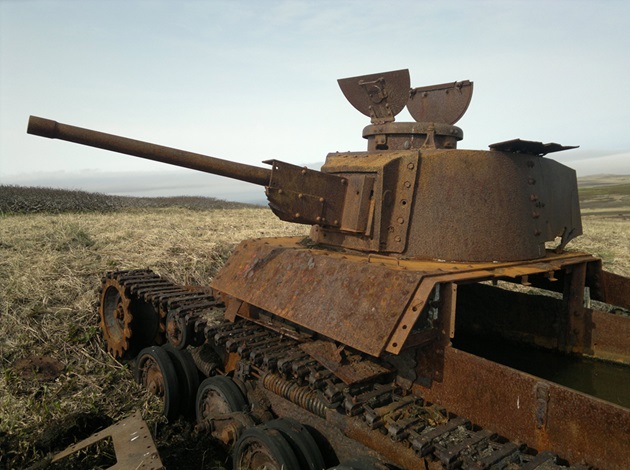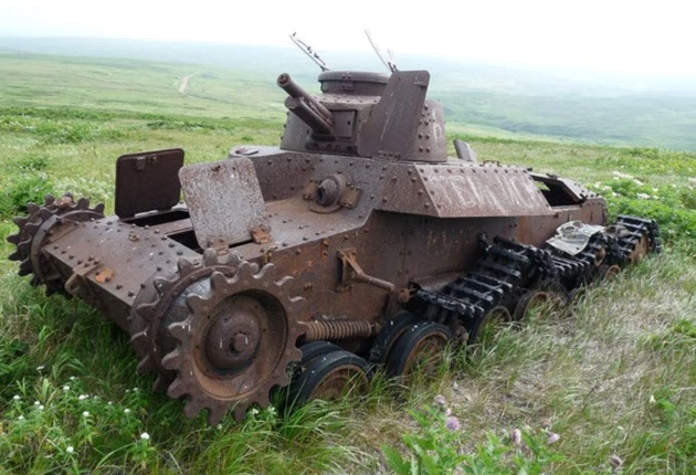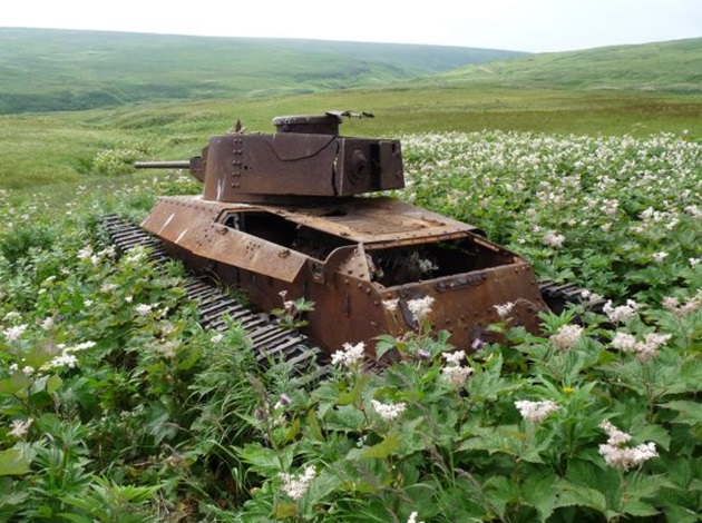 Rusty abandoned Japanese tanks on Shumshu Island today.