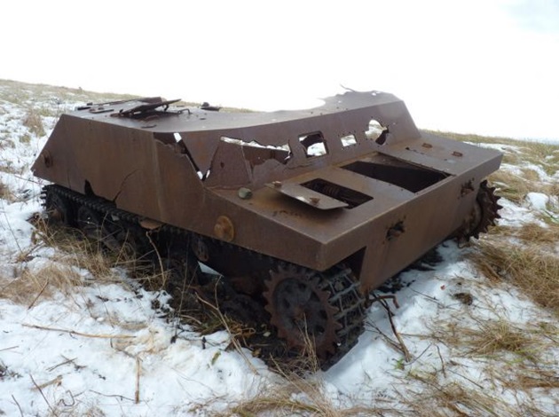 A knocked out Soviet T-26 tank in South Sakhalin.