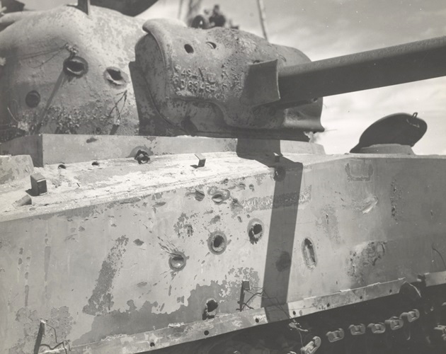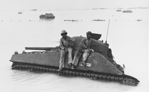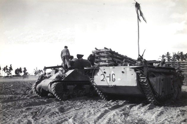 Sherman named COMMANDO, part of the HQ Section, was commanded by Second Lieutenant Louis Robinson Largey. COMMANDO and CECILIA successfully navigated the treacherous reef and made it onto Beach Red 1. COMMANDO destroyed the Japanese tank which disabled CECILIA’s main gun. After CECILIA returned to the beach, COMMANDO pushed further inland than any other Sherman operating with US Marine infantry.