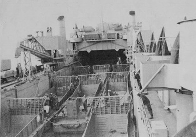The huge well deck of the LSD was an opening 44 feet (13.4 meters) wide and 396 feet (120.7 meters) long which ran from the stern to clear up under the bridge ending near the bow. The well deck was 61 feet (18.6 meters) short of the ship’s 457 foot (139.3 meters) overall length. The well deck capacity (varies with mission) was 14 LCMs (Mk III) each with 1 medium tank or 47 DUKWs or 41 LVTs.