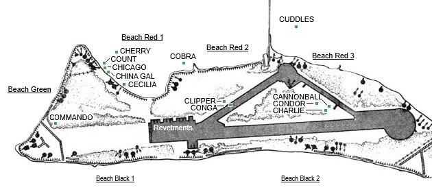 - 80mm Anti-boat Guns: Six of these were organized into two batteries of three, located on the west and south shores to fire on reef approaches.