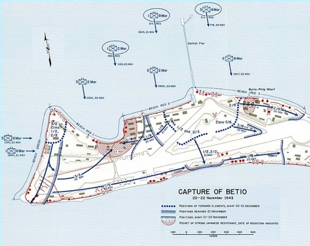 Allied Command planned on spreading their naval and air reach by first setting up air bases in the Gilbert Islands in the Central Pacific, that would eventually support a naval and air campaign to take over the Mariana Islands. Only one obstacle stood in the way, and that was the well-fortified Japanese base with an airstrip on Betio, the largest island of the Tarawa Atoll. Betio was the most eastern Japanese occupied island and the closest to the Equator.