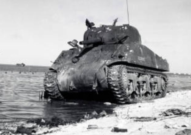 Front view of Sherman CECILIA on Beach Red 1.