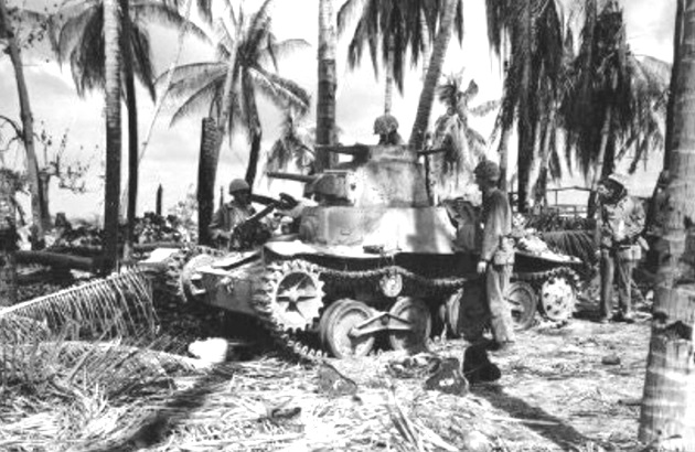 The M3A1 tanks were primarily used for close-in infantry support, bunker busting, and direct-fire suppression of machine-gun nests. The M3A1’s 37mm gun was ineffective against most of the Japanese bunkers, forcing the tankers to drive right up to the bunker embrasure and fire high explosive rounds directly into the gun-slits. Also, the thinner armor of the M3A1 tank could not withstand hits from the Japanese anti-tank guns.