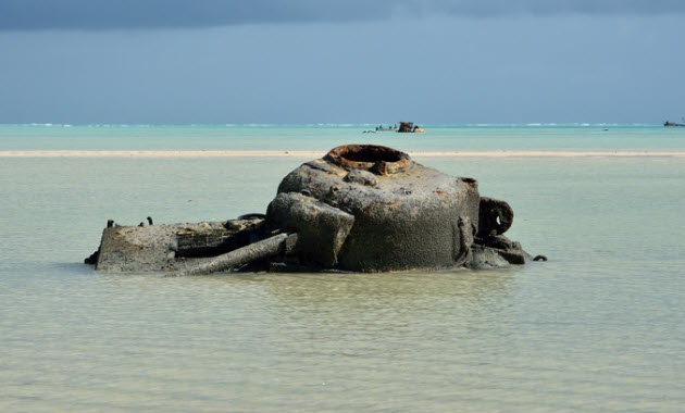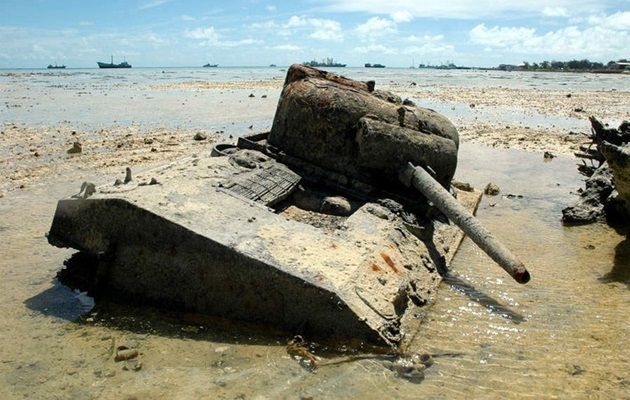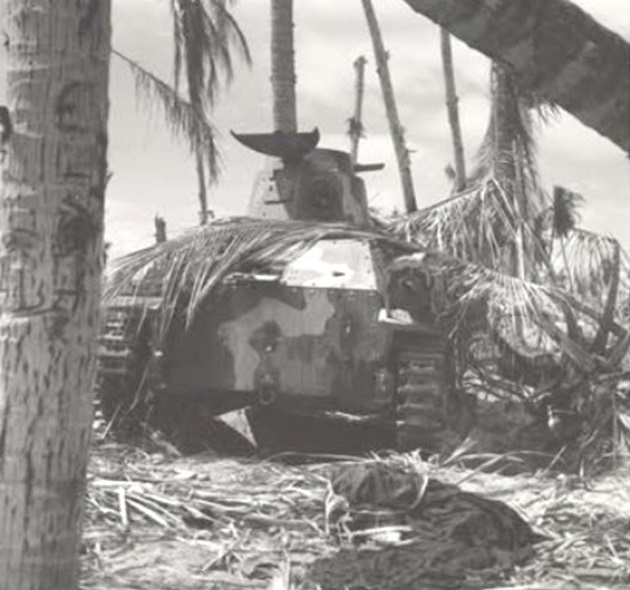 Several Japanese tanks remain on the island, including one on Beach Red 2, another in the surf near Beach Red 3, and a third on the southeast side near Beach Black 2.