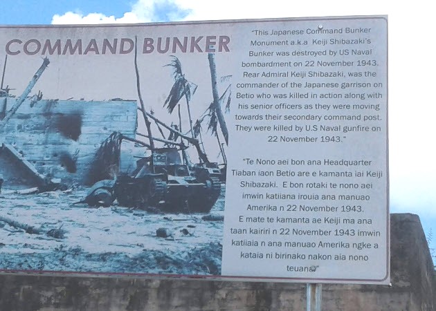 The sign state Rear Admiral Shibazaki was killed on 22 November 1943, the 3rd day. Other sources state he was killed on November 20th, the first day.